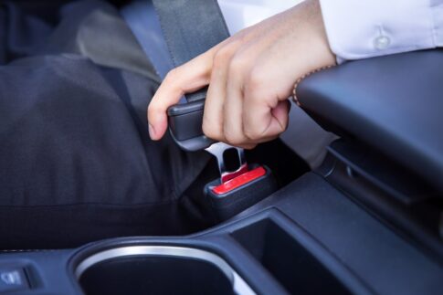 シートベルトは、衝突したときに乗員が車外に放り出されるのを防ぎ、ケガを最小限にとどめる効果があります。