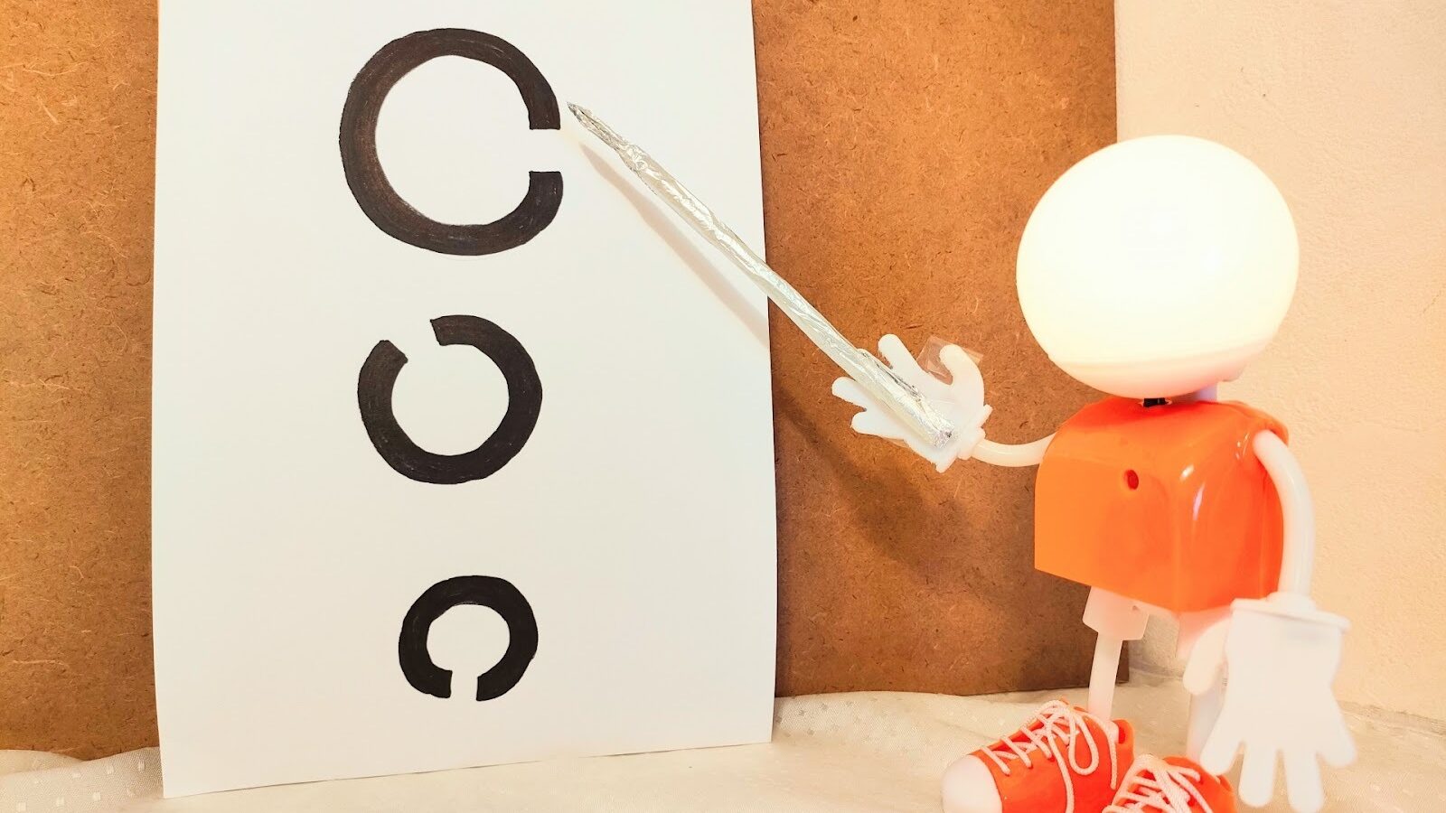 ランドルト環検査は、アルファベットのCのようなマークの切れ目方向を答える検査方法です。